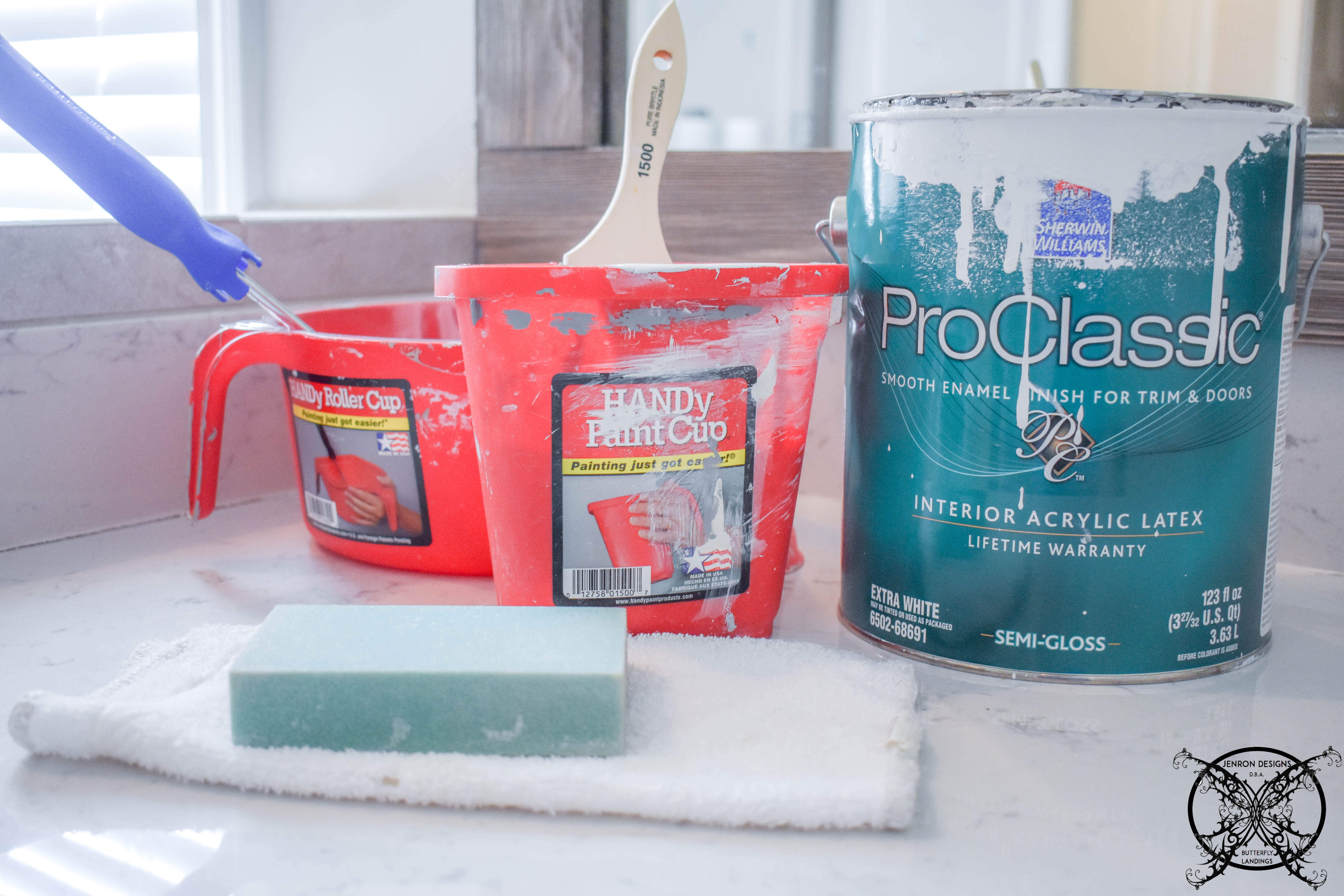 You may remember that last season HANDy Paint Products sponsored us during the One Room Challenge and supplied us with all of our painting supplies for season four Guest Bedroom update. Well we are so grateful to still have a bunch of their amazing products available for this HUGE painting project! I can not imagine using any other painting supplies now that we have full use of the entire product line and since we a avid DIYers we are always doing our own painting, so I can personally speak from experience