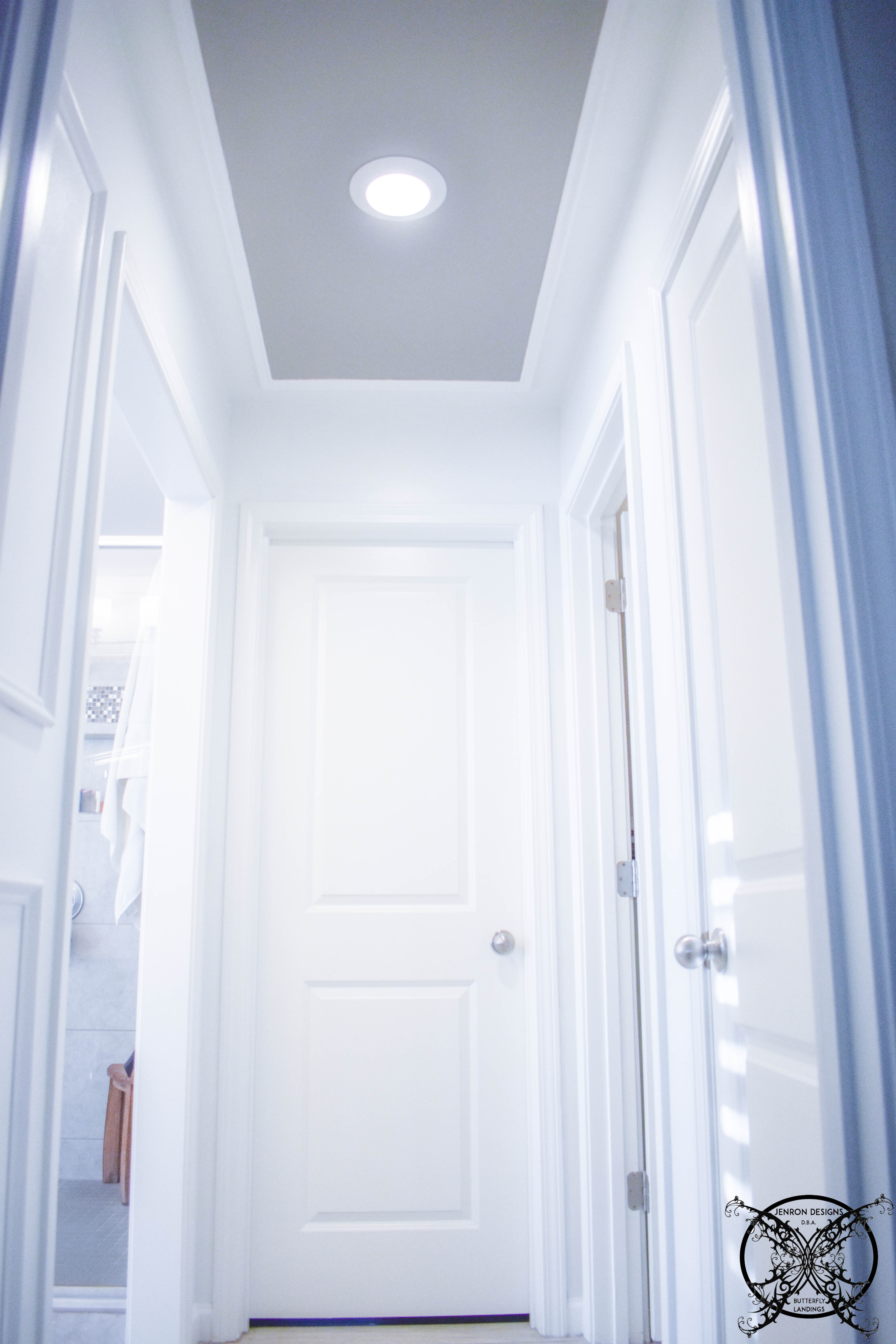 If you are like us your projects can run late. Always make sure to recheck the coverage during the light of day with natural light before calling a painting project done. You maybe surprised at the places that looked done in artificial light but show up in natural daylight. If you are worried about double clean up, use a plastic store bag to wrap up your rollers and brushes over night so you do not have to waste another one with the touch ups.
